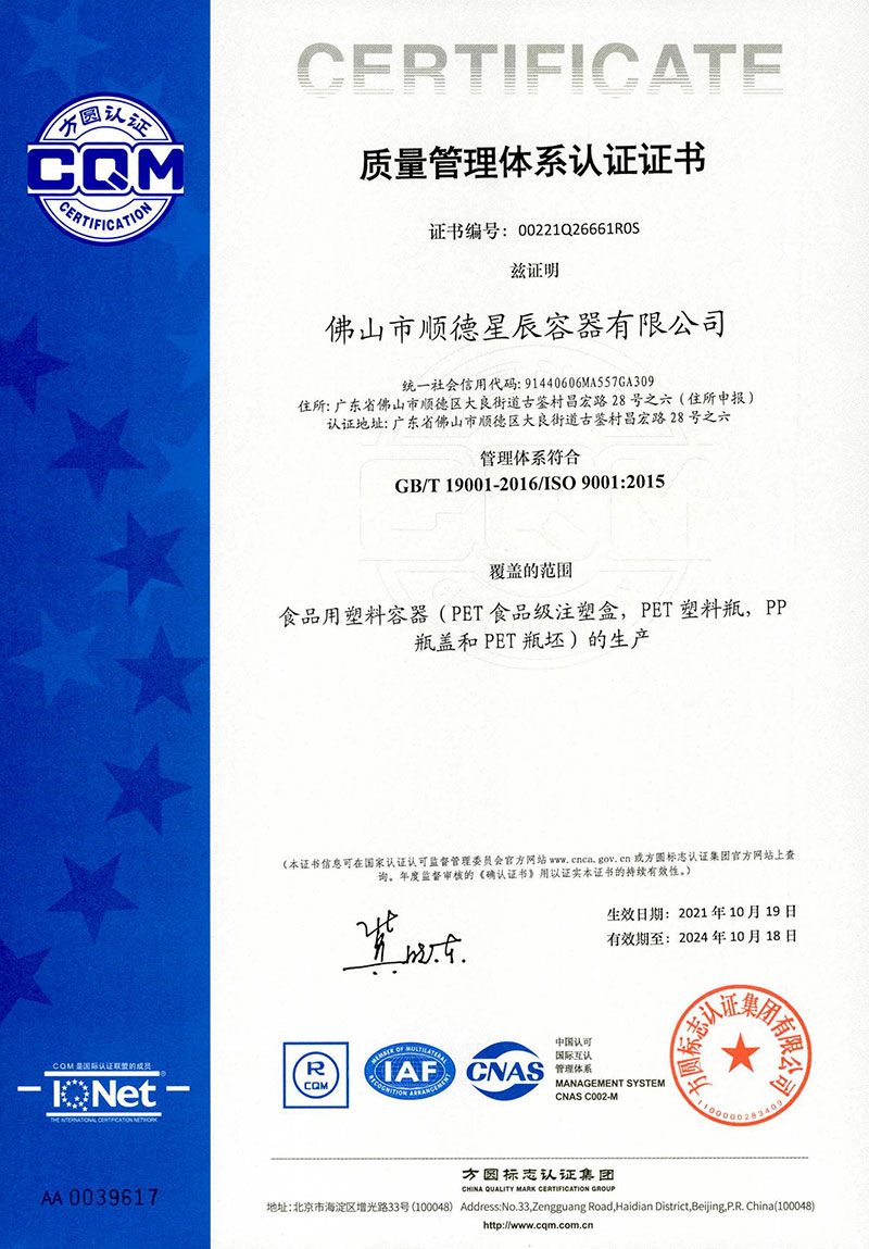 • 質量管理體系證書